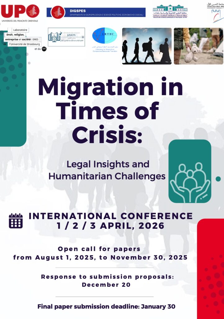 The Faculty of Legal and Political Sciences at Hassan I University of Settat (Morocco), in collaboration with the Department of Law, Political, Economic and Social Sciences at the University of Eastern Piedmont (Italy), is organizing an international conference dedicated to current migration dynamics in a global context marked by climatic, political, health and security crises.